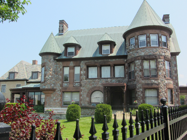 across the bridge to Palatine Bridge, New York. A few of the building we saw were made of stone. The square one is the Town Hall and the other one is an unusual house.